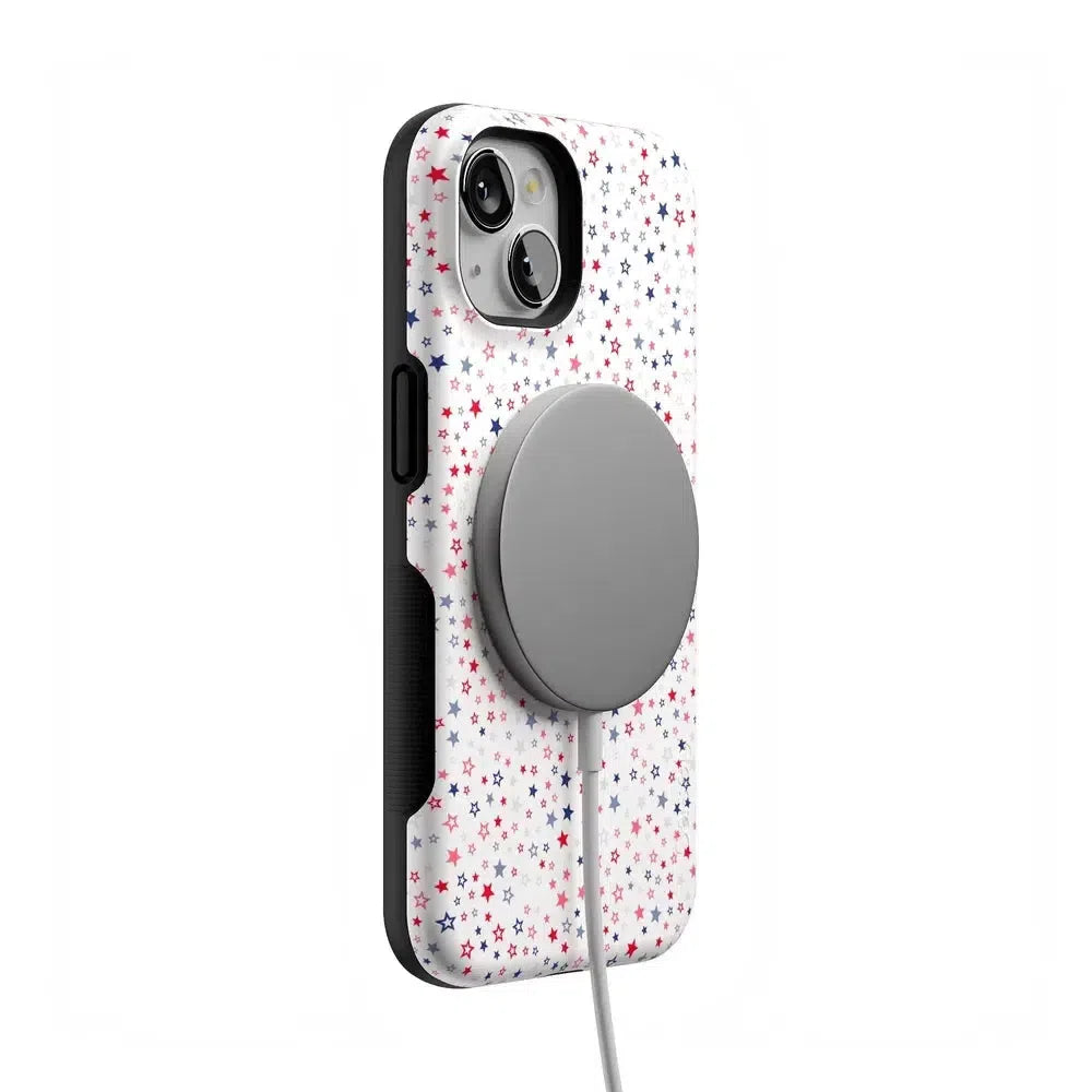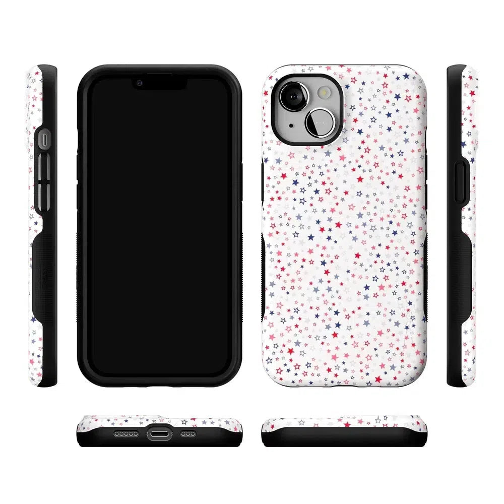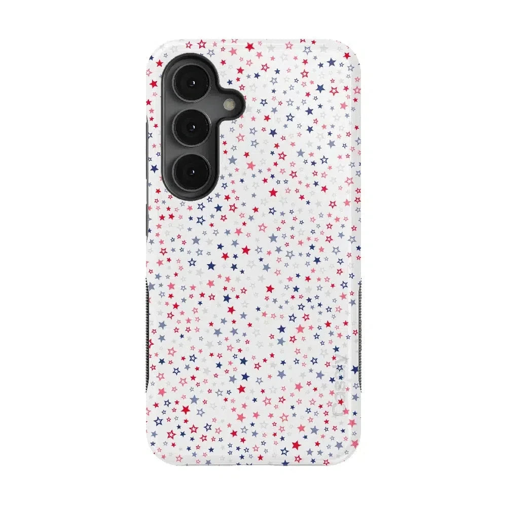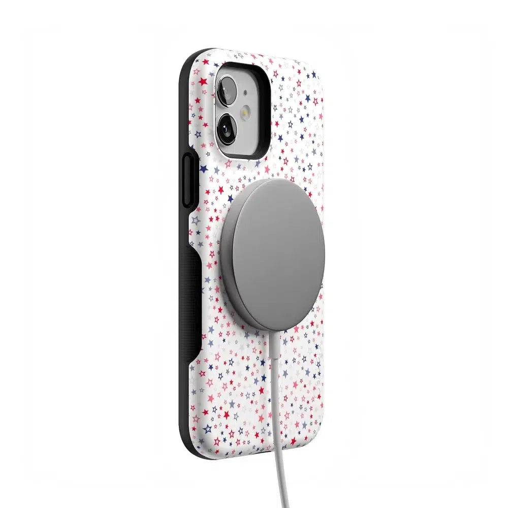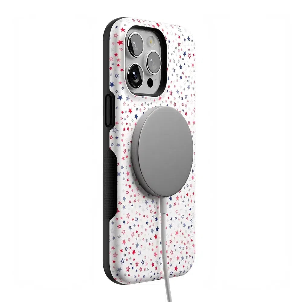Feel the festive spirit with the vibrant red. white. and blue stars! Casely’s Seeing Stars Red. White & Blue Case captures the essence of patriotic celebration with its lively and eye-catching design. Featuring 360掳 wrap protection. a slim profile. a 2mm raised lip for screen and camera protection. and a built-in MagSafe compatible magnet. this case ensures both style and dependable protection for all your summer adventures.