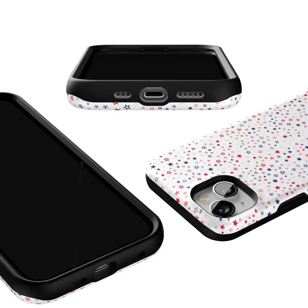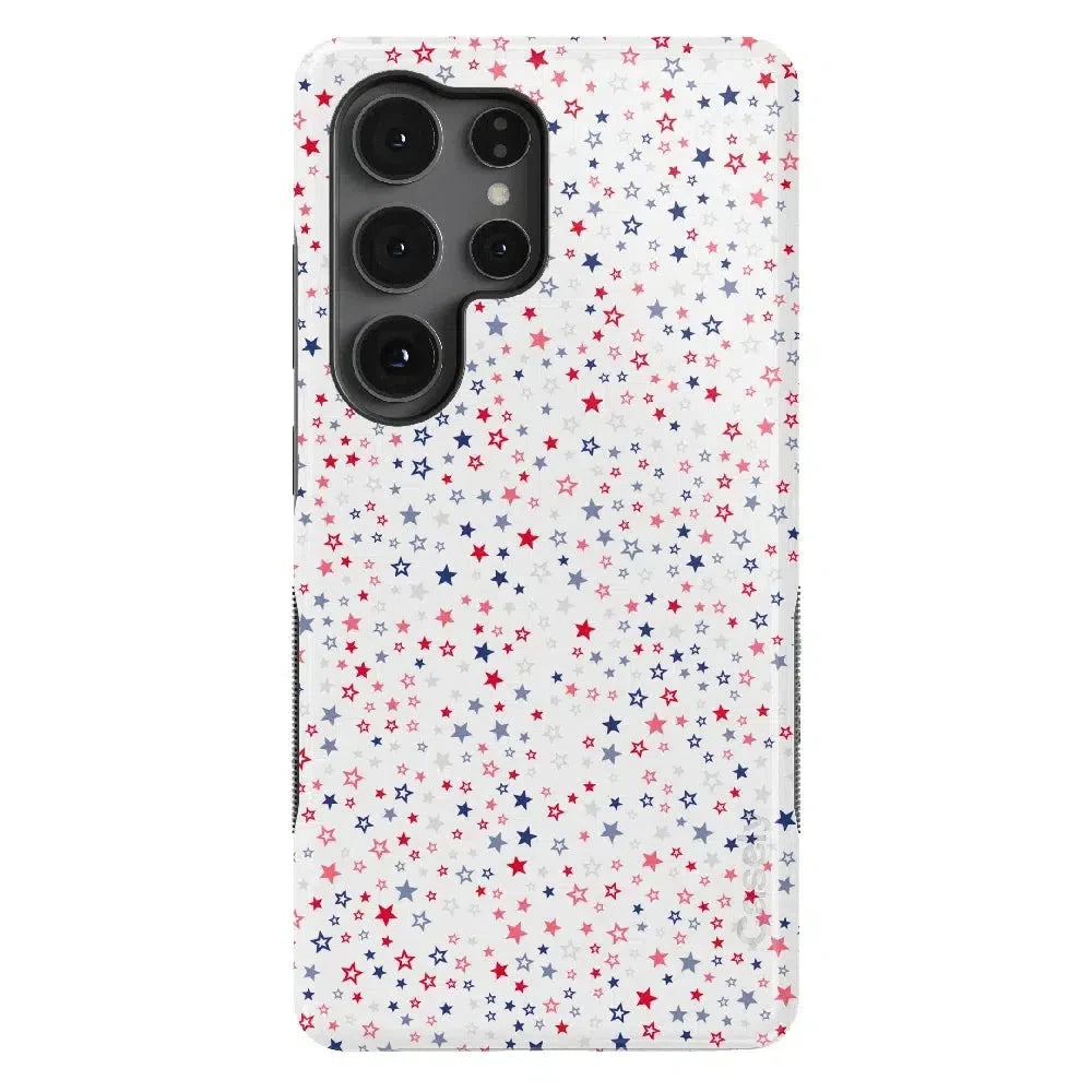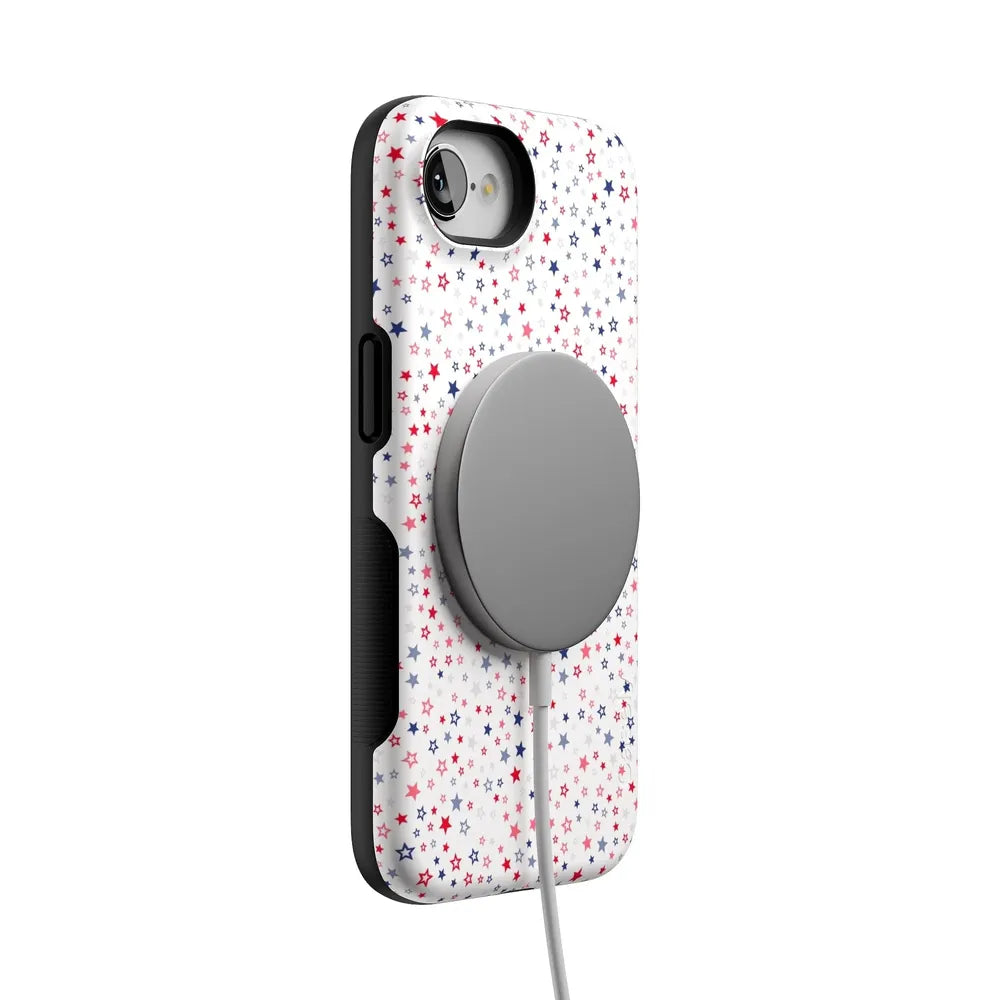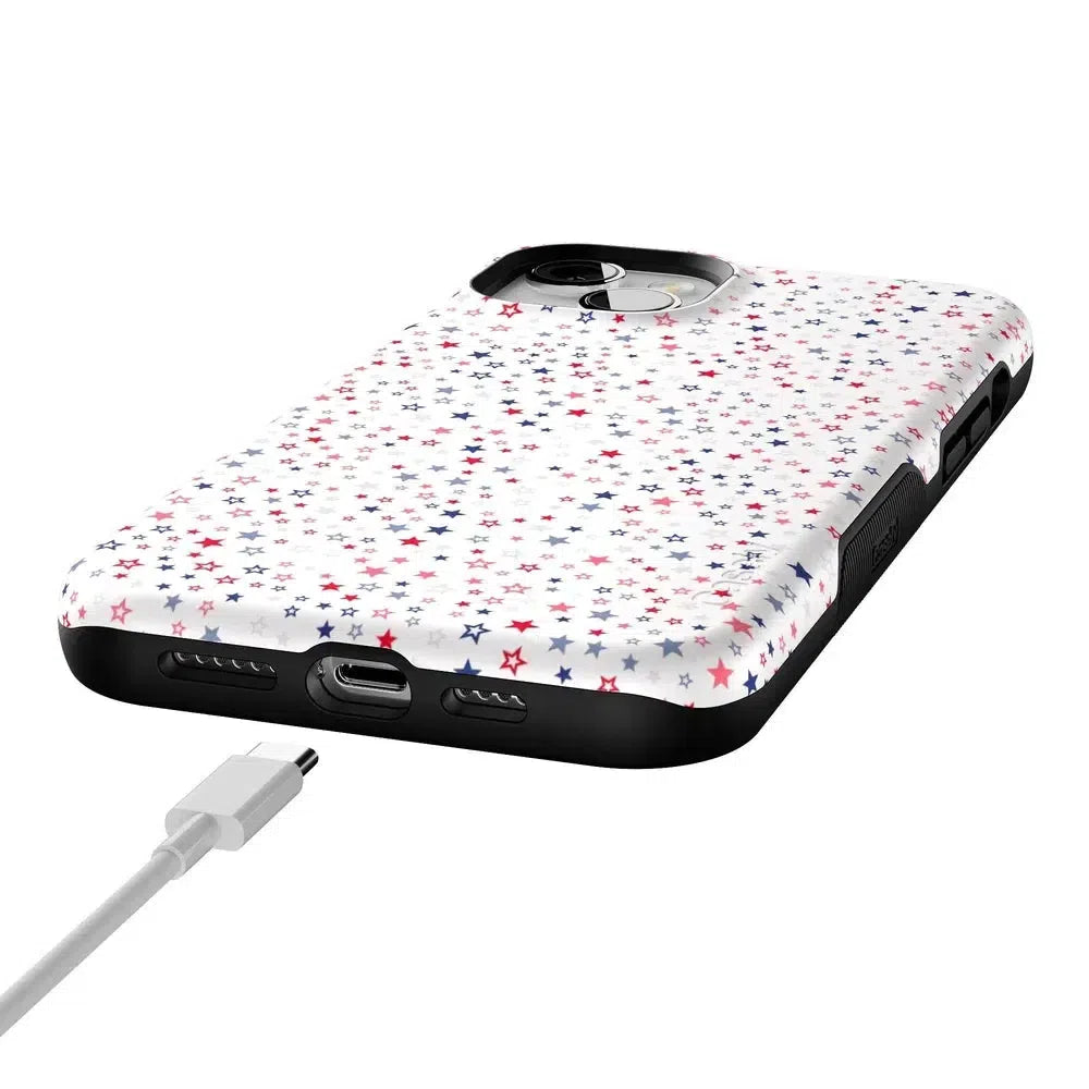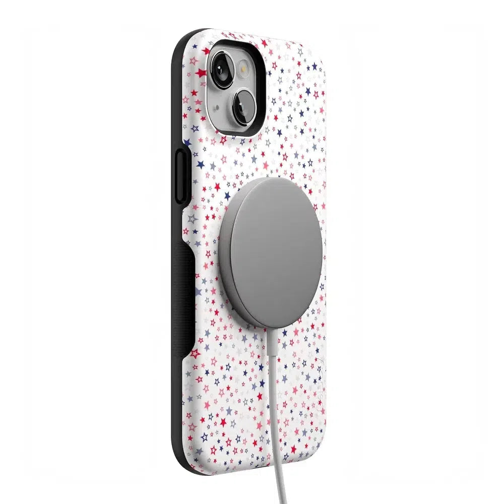 Feel the festive spirit with the vibrant red. white. and blue stars! Casely’s Seeing Stars Red. White & Blue Case captures the essence of patriotic celebration with its lively and eye-catching design. Featuring 360掳 wrap protection. a slim profile. a 2mm raised lip for screen and camera protection. and a built-in MagSafe compatible magnet. this case ensures both style and dependable protection for all your summer adventures.