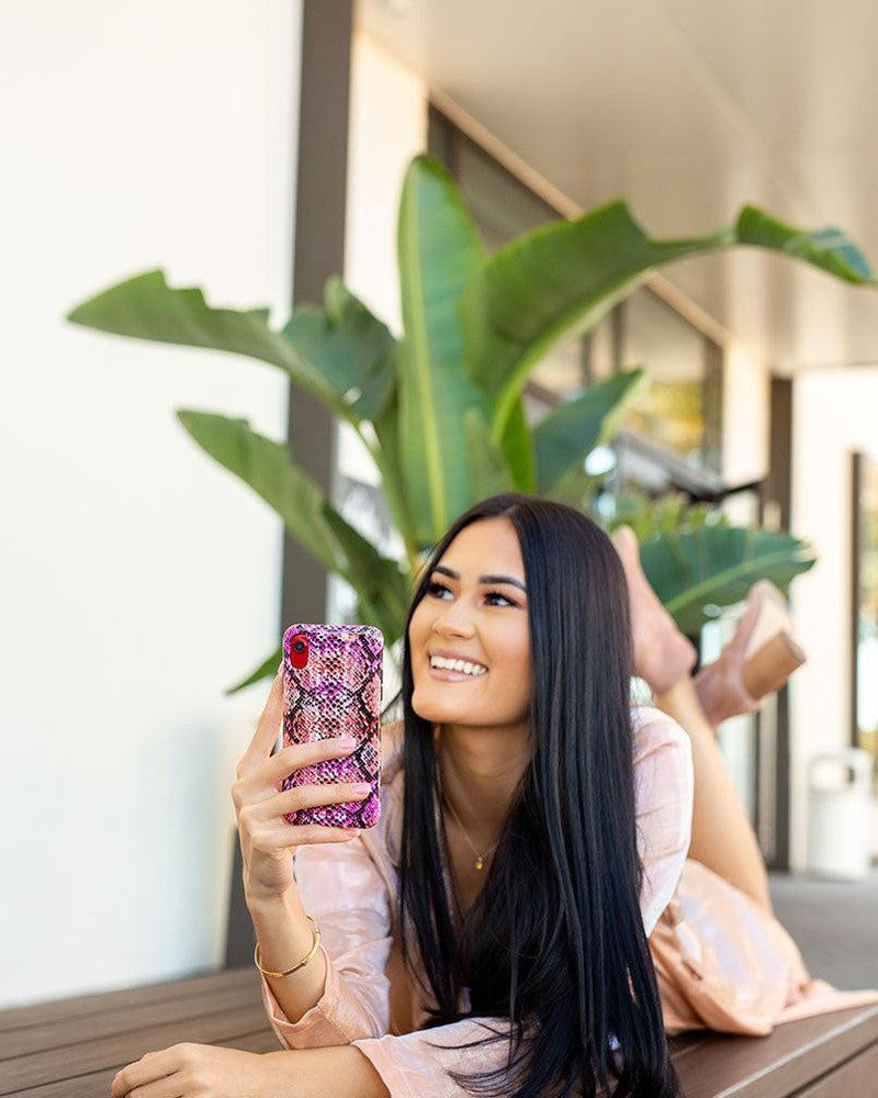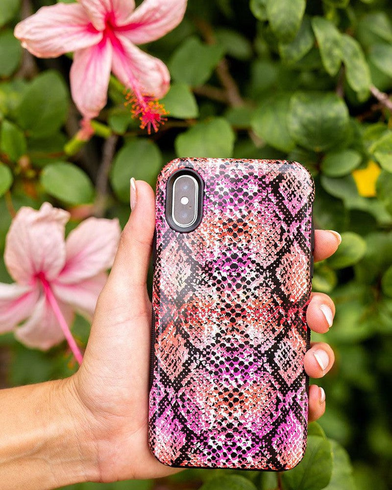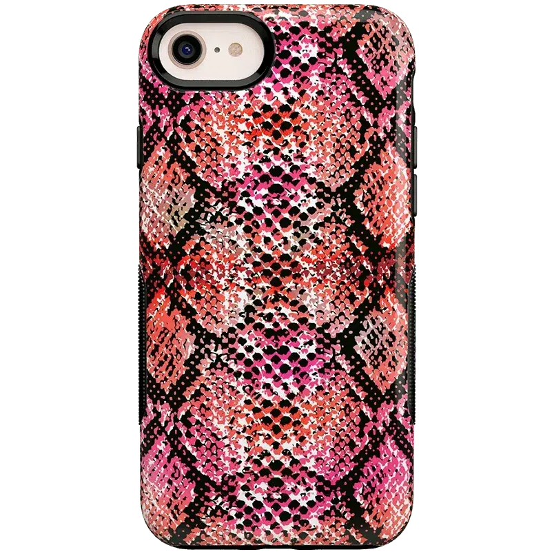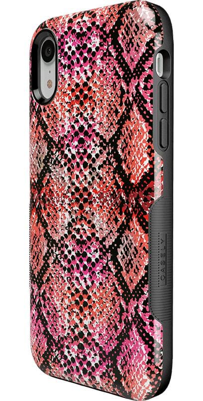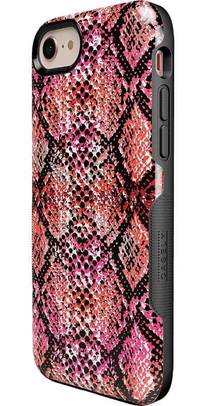 Snakes shed their skin often. revealing a beautiful new coat to accompany them as they slither throughout their territory. If it’s time to shed your phone case and get a new one. consider this Snake Along | Red Snake Skin Case from Casely. The pattern on this case is to die for. with red. pink and black snakeskin covering every inch. Slide along into the ranks of the most stylish with this stand-out case that even the sneakiest will notice. If your case slips out of your hand. there’s no need to worry as all Casely cases come equipped with a multilayer polycarbonate protection and durable 1.2mm thick edges along the screen to prevent any ugly cracks from getting in the way of a good time. Control your phone nimbly with the embossed buttons that make clicking super easy. Become the true envy of all the rest with this sneaky. sexy Snake Along | Red Snake Skin Case.