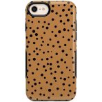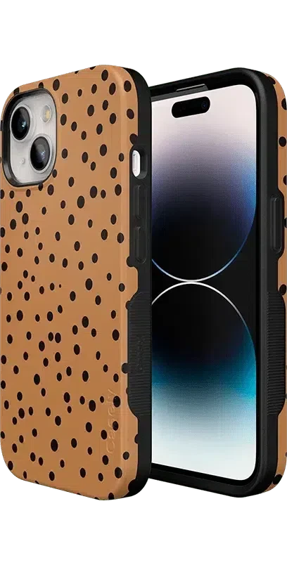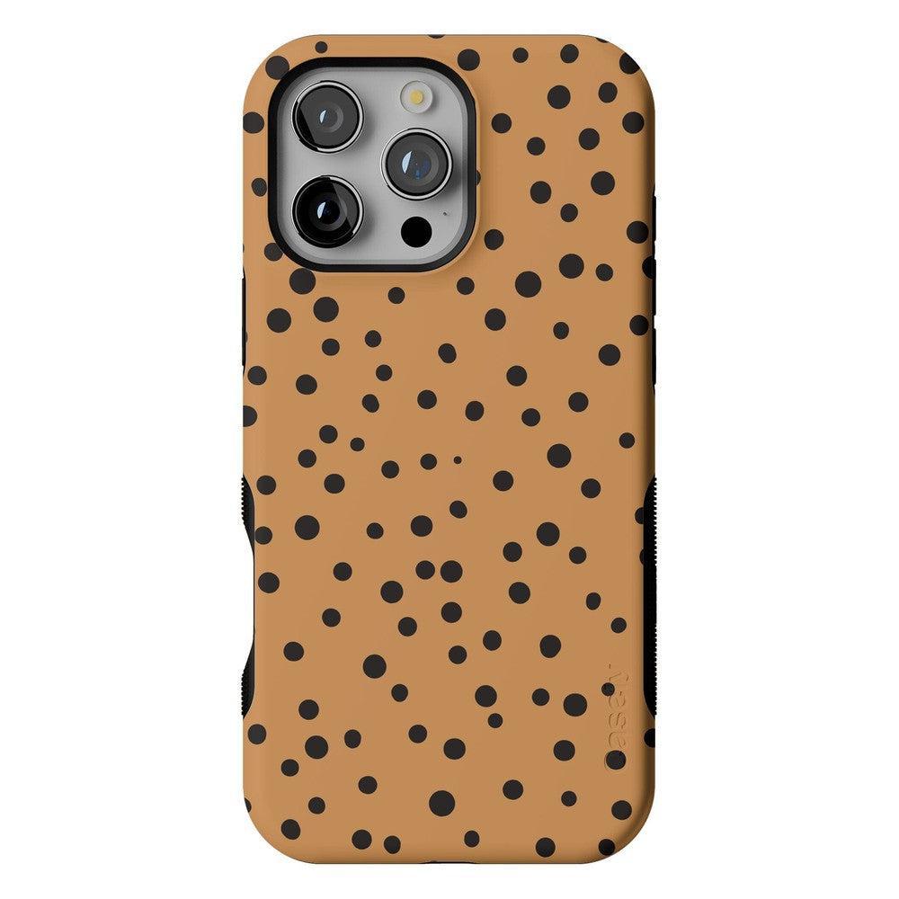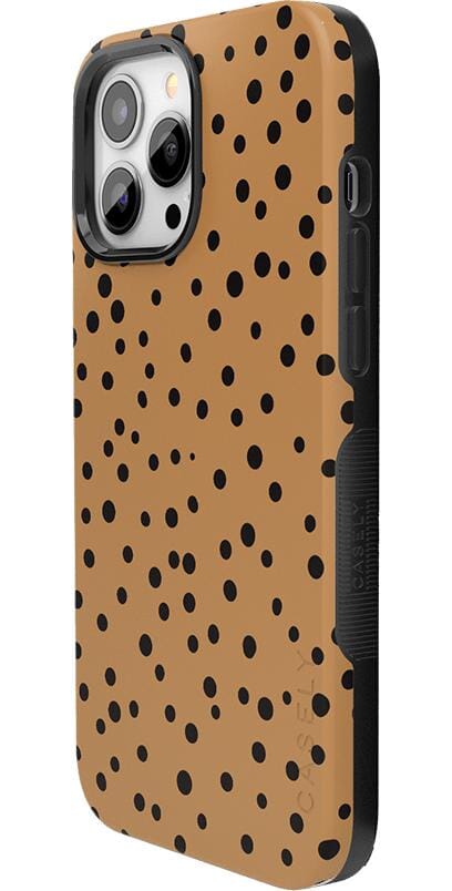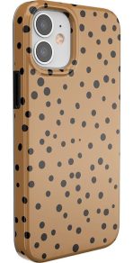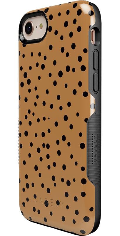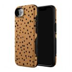 This eye-catching orange-base colored phone case is sure to match all of your animal print looks. With a burnt pumpkin. autumnal feel. it is a perfect fit for the fall season. This is a bold piece that acts as an accessory to any outfit. Its dotted pattern is versatile. playful and fun. while also stylish and chic. The subtle orange hue serves as a lovely compliment to a fall color palette. This phone case can be purchased for all iPhones 6 and up. the latest Samsung models. and the latest Note models. While this cover may seem frilly and flimsy. its looks don’t detract from its ability to keep your phone in mint condition. The edges are specifically rounded to keep your phone screen from getting cracked and keep the volume and power buttons from getting broken. This eye-catching pattern is perfect for a night out with friends or a chill night at home.