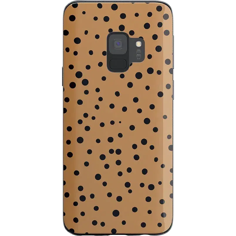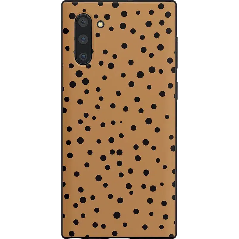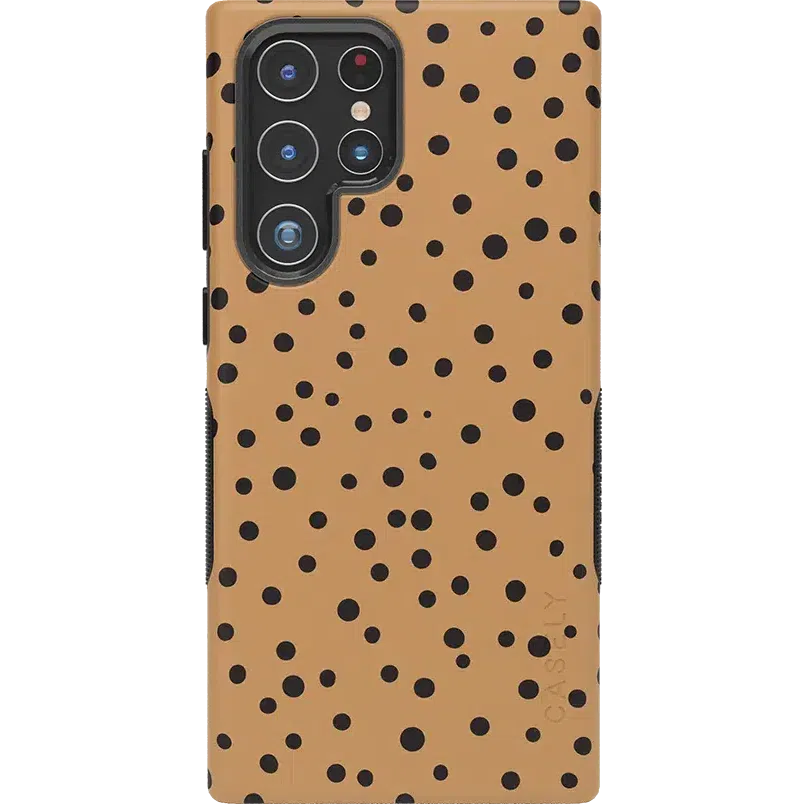 Polka dots have remained universally popular ever since print patterns were first invented. Why? Because they are timeless and complement just about any design that they adorn. including our Samsung Galaxy S22 phone cases! These cases feature a variety of sizes of black dots against a tan background. elevating the polka dot pattern to a more artistic level. It’s a sleek. minimalist design with just enough character to complement your vibe.