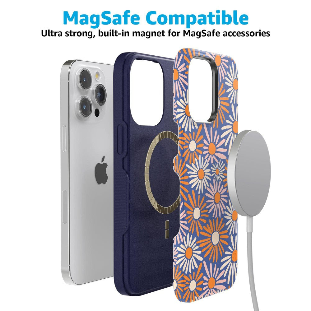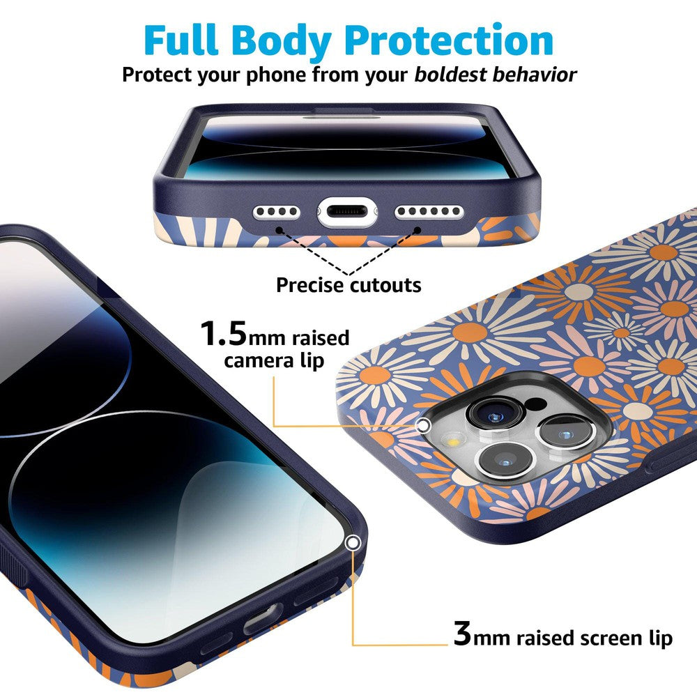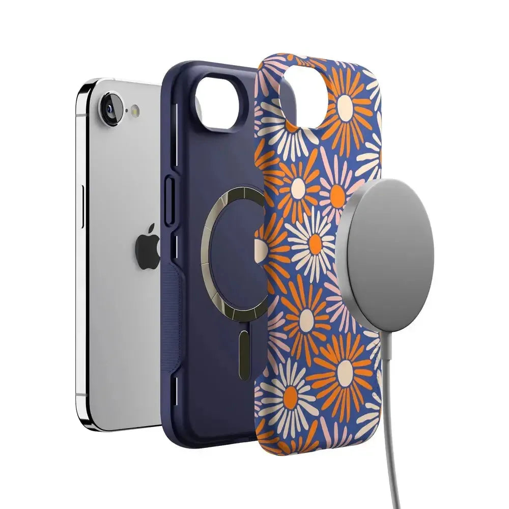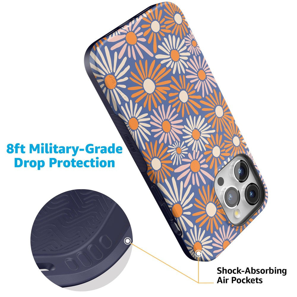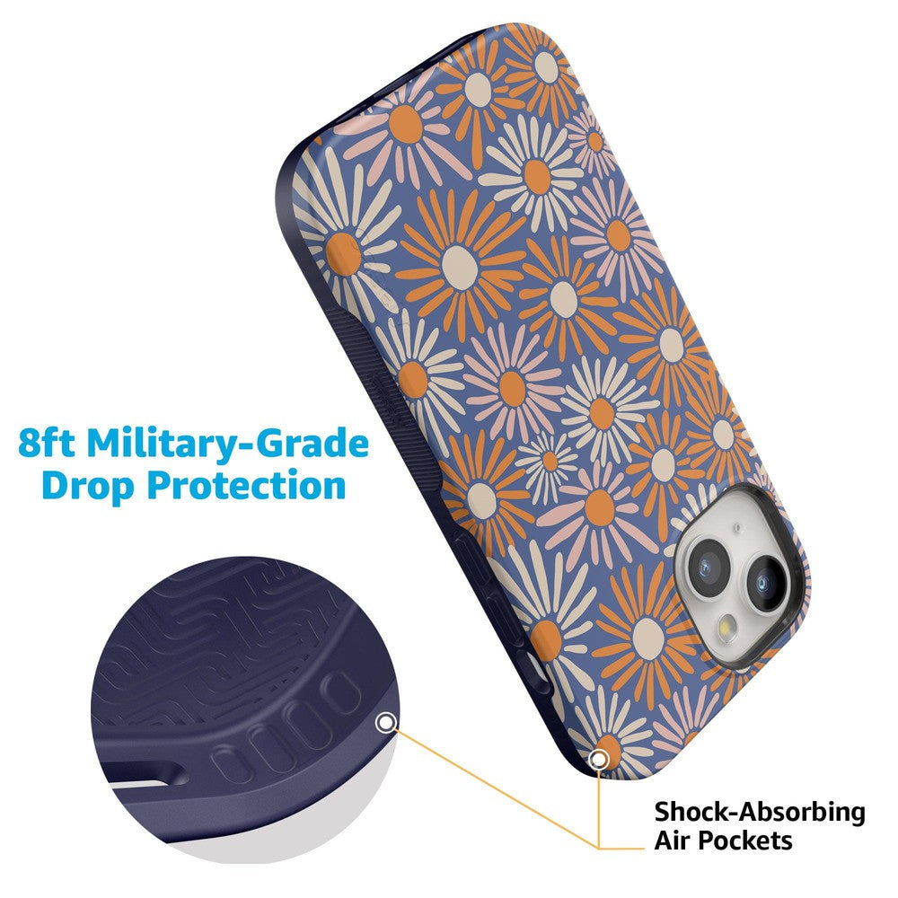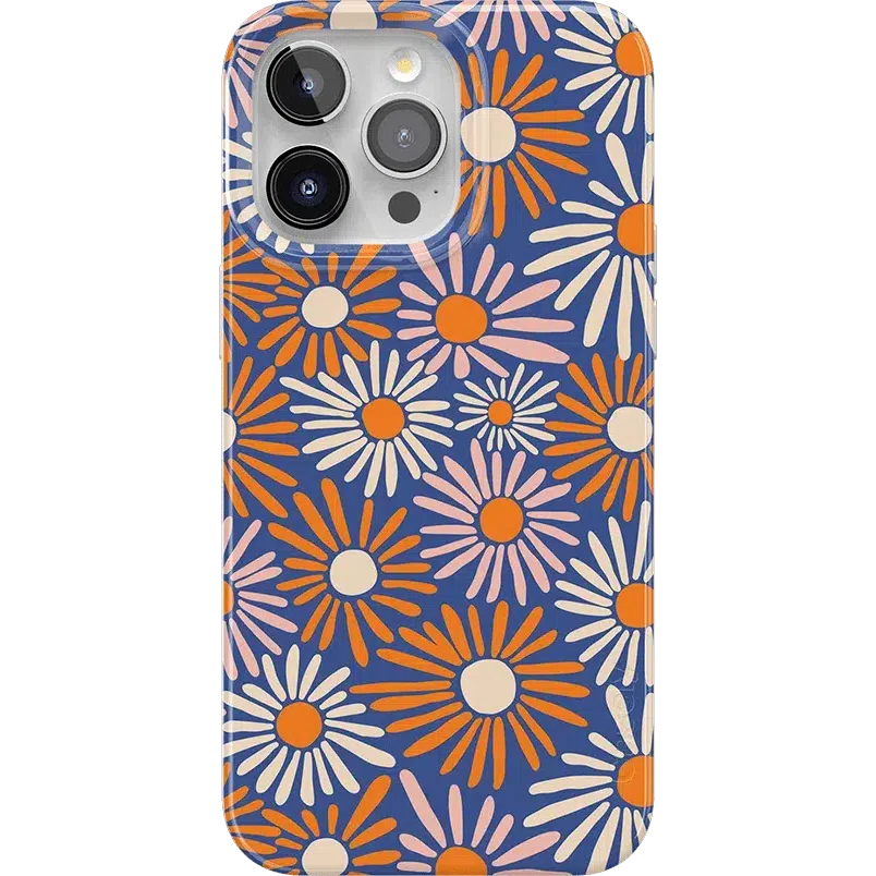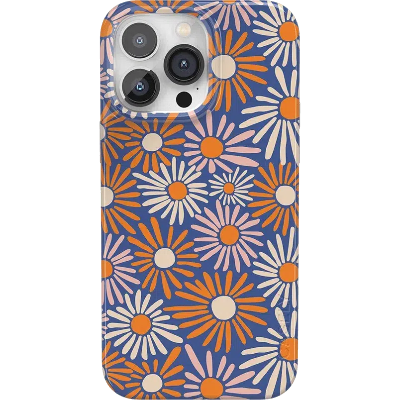 Even if you don’t love daylight savings time. you’ll be eager to Spring Forward with this Daisy Floral Case. Its bold flowers burst like fireworks in rich oranges and pale pinks against a deep navy background. You’re looking at one bold color palette鈥攁nd you’re looking ready to Spring Forward into fashion. We love a good phone accessory that fits your unique personality. and this case in Daisy Floral has that perfect aesthetic of bold and contained. You’ll have a fully coordinated fashion-forward outfit through all seasons.