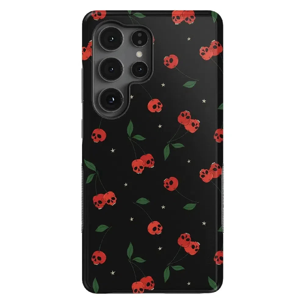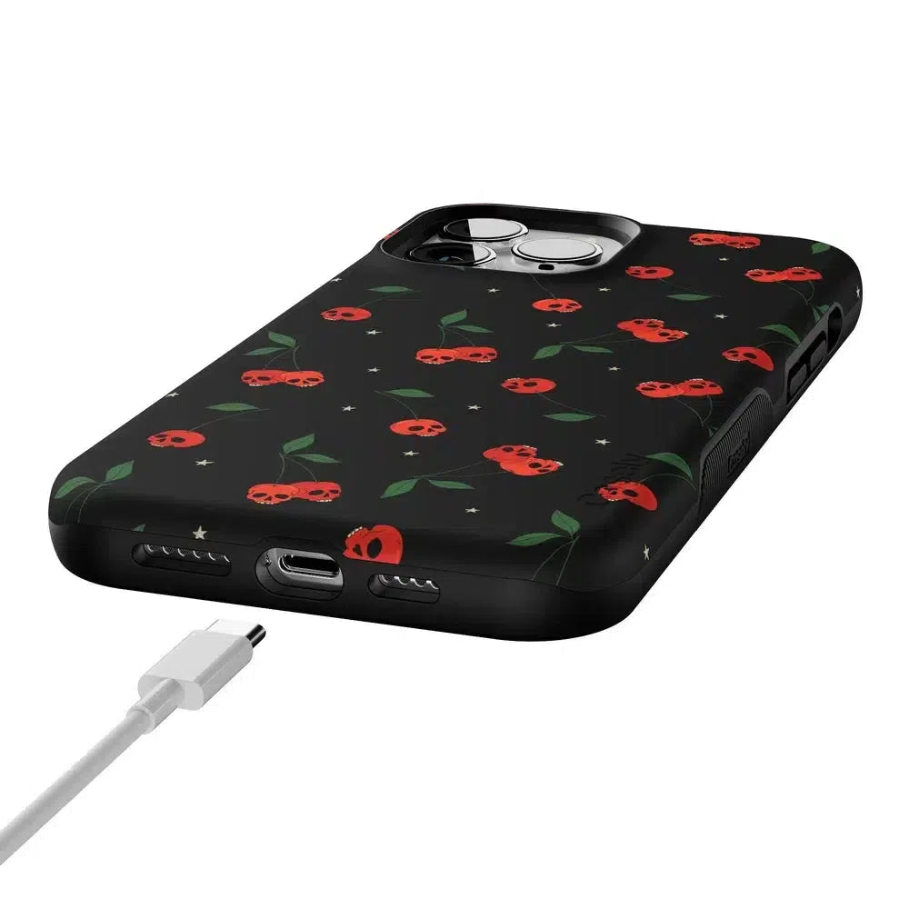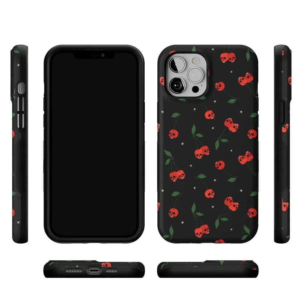 Indulge your dark side with the Sweet Revenge Cherry Skulls Case. part of our exclusive Halloween Collection. This striking phone case pairs sweet cherries with edgy skulls for a look that’s equal parts playful and sinister. Crafted with dual-layer protection. it offers robust defense against drops and scratches while maintaining a slim. sleek profile. Perfect for those who embrace both the sweet and the dark. this case elevates your device with a touch of rebellion.