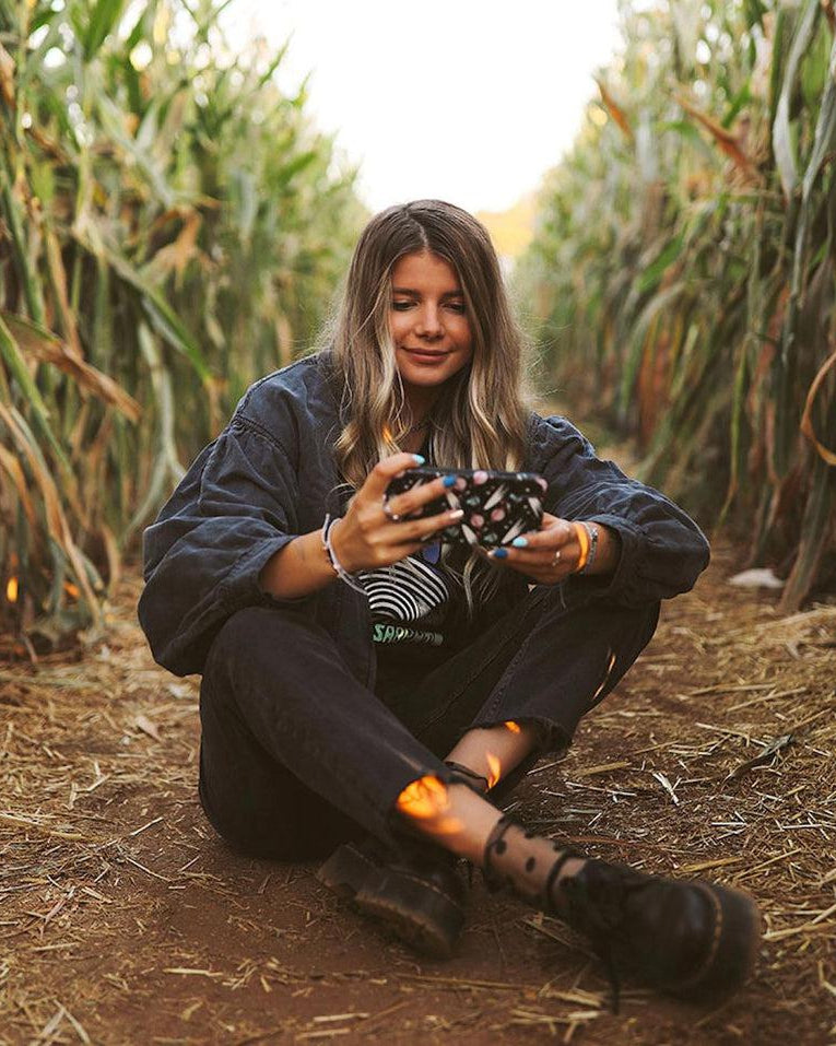 This accessory makes it easy to show off your other-worldly style. Its black background and fun colors pair well with a variety of outfits.