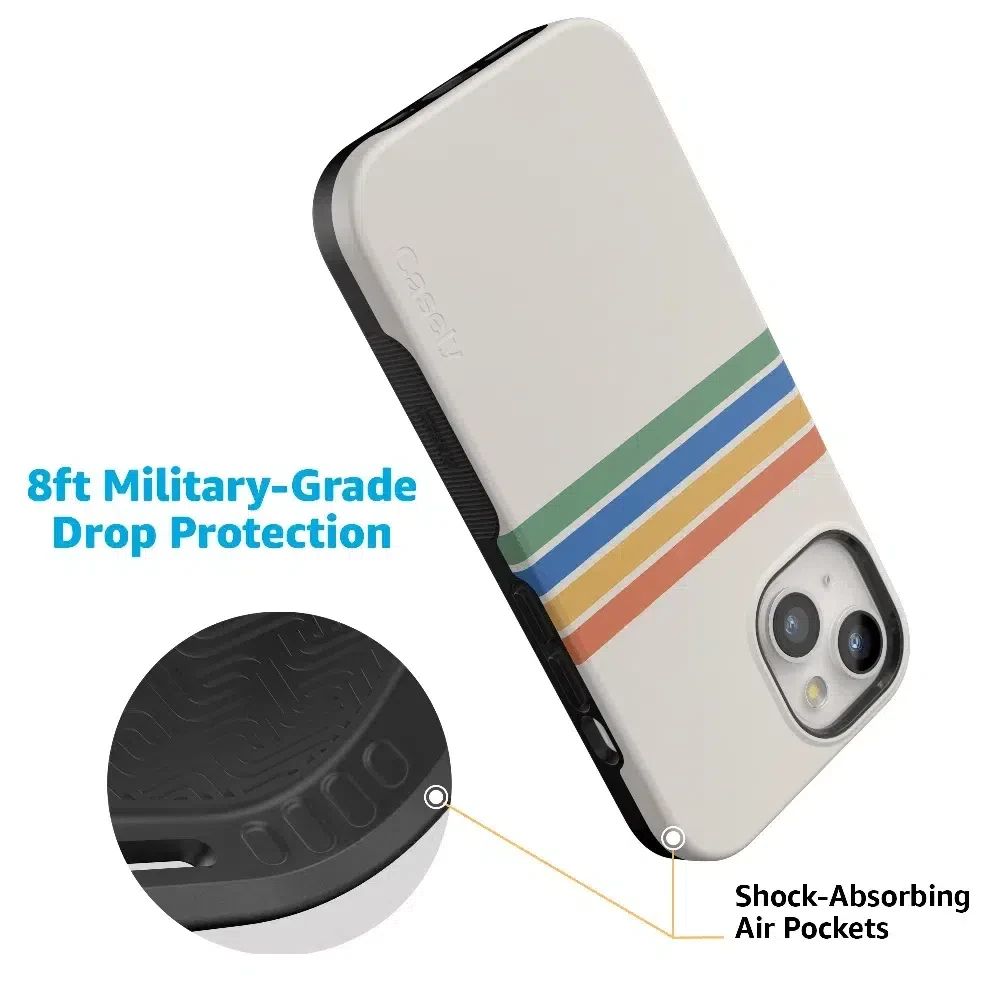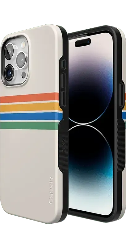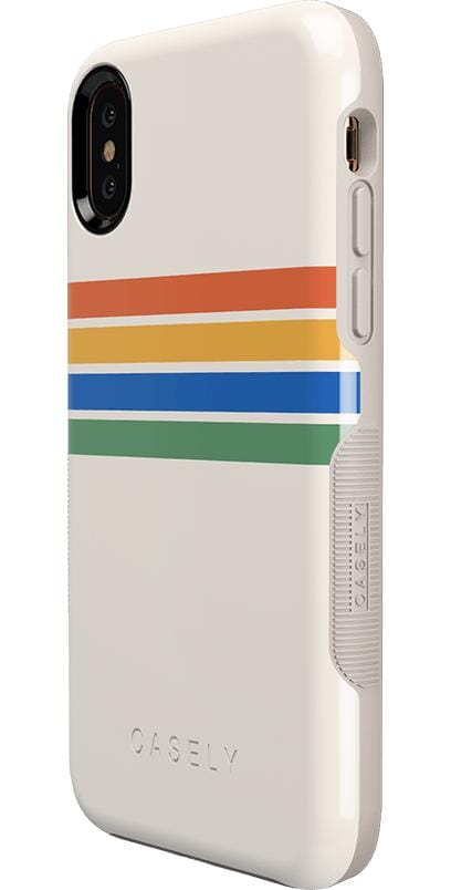 For a touch of 70s style. you can’t go wrong with our Rainbow Stripes Color Block Case.