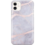 Protective white marble design phone case layered with shiny rose gold chrome cracks topped with a gloss finish. This design is perfect for any girly who wants her phone to shine in the sun!