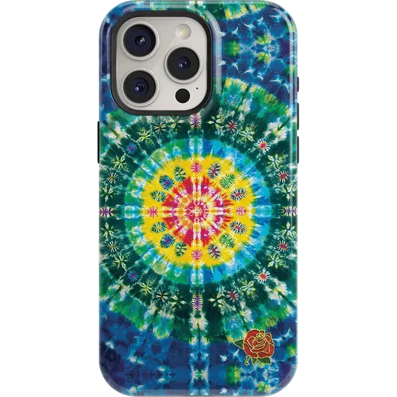As a prominent band during the counterculture movement. the Grateful Dead is widely known for its use of tie dye in its branding. Embrace your Deadhead fan status with this Veneta Tapestry Tie Dye phone case. It features an intricate design that begins with a bright yellow circle filled with geometric shapes. From there. the image radiates out into green and blue circles. creating a unique tie dye effect that your friends will love. This case will complement any everyday work or casual outfit. Or. you can pair it with a hippie-inspired outfit at your next Coachella event or another music festival.