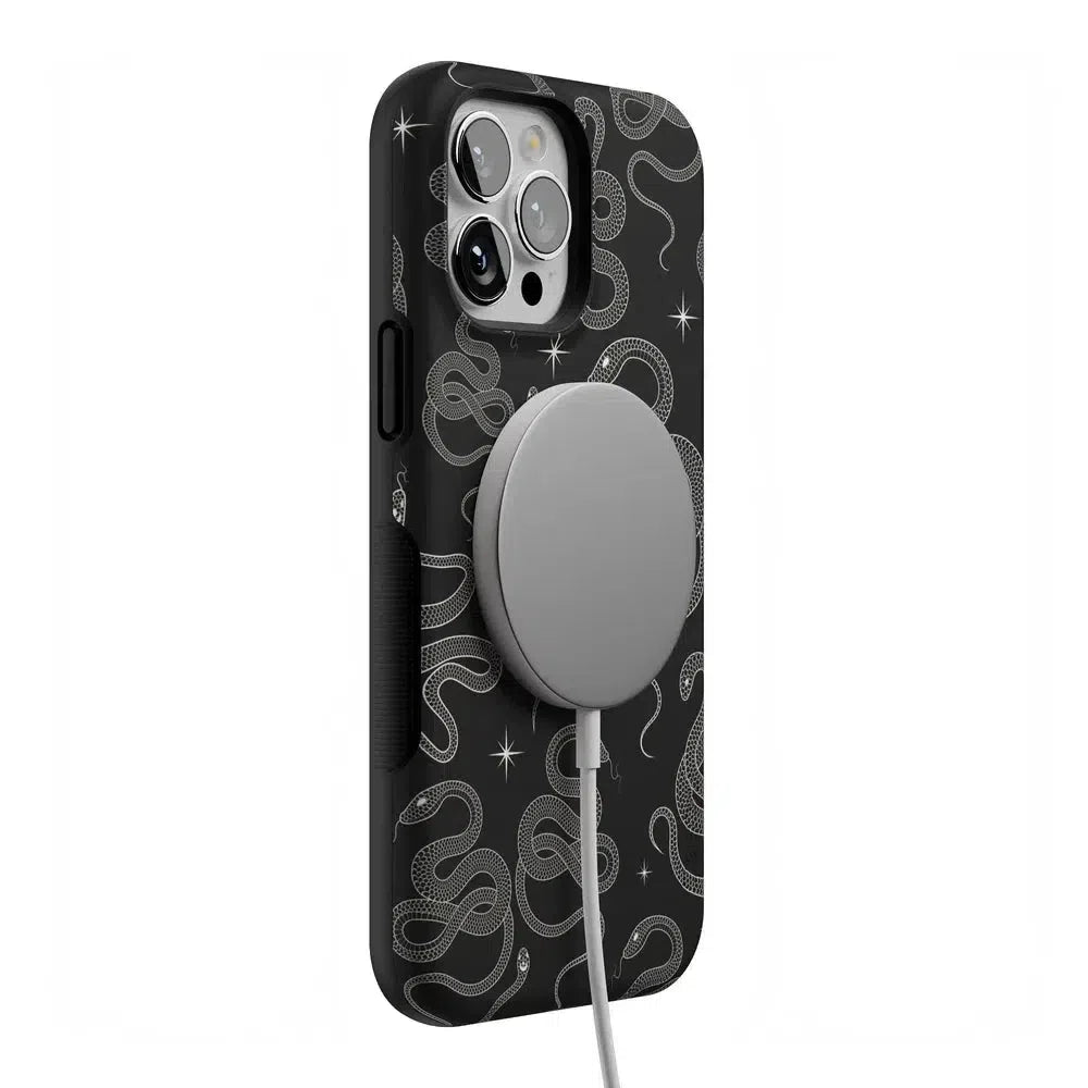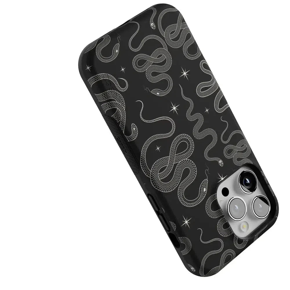 Channel your inner rebel with the We’re Ready For It Black Serpent Case. This sleek. black case features an intricate serpent design that twists and turns across the back. adding a touch of mystique to your everyday style. The shimmering serpents against the matte black background create a powerful. yet understated look that’s perfect for those who are no strangers to reinvention.