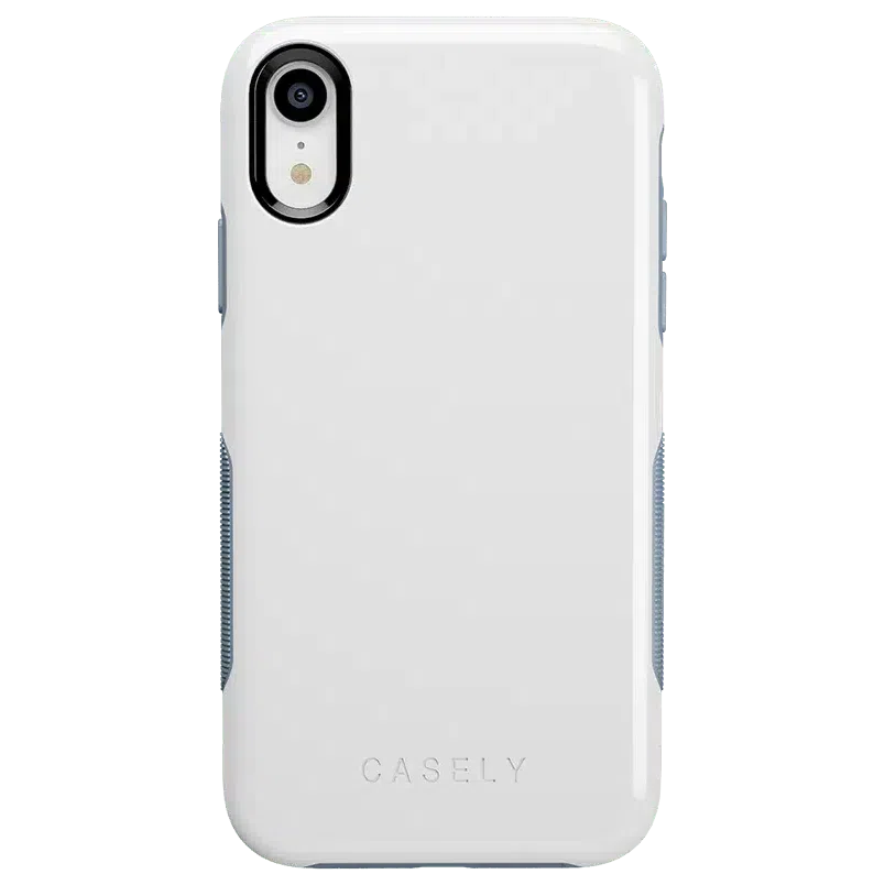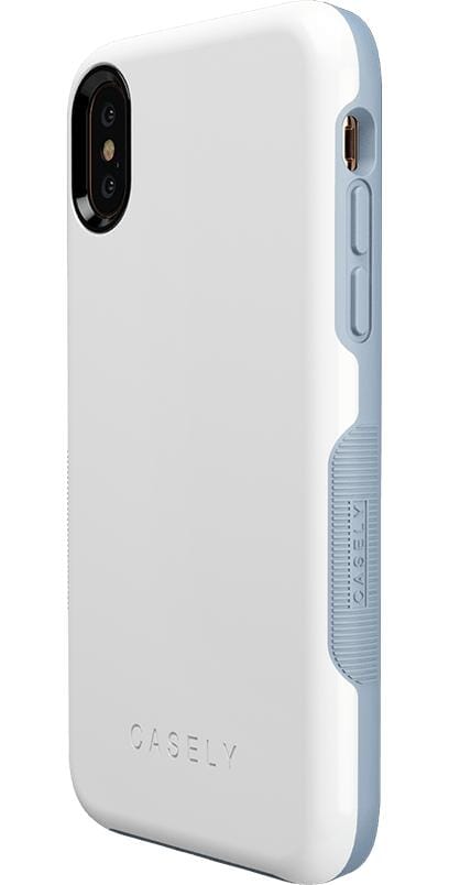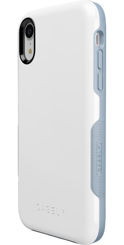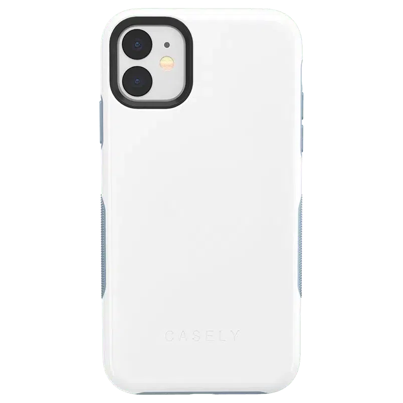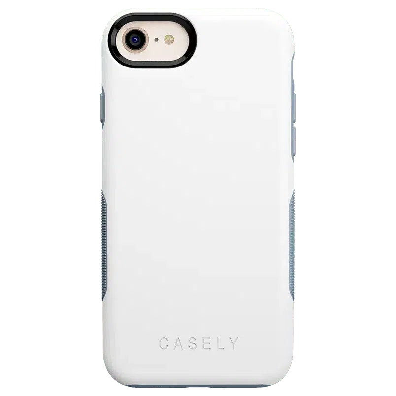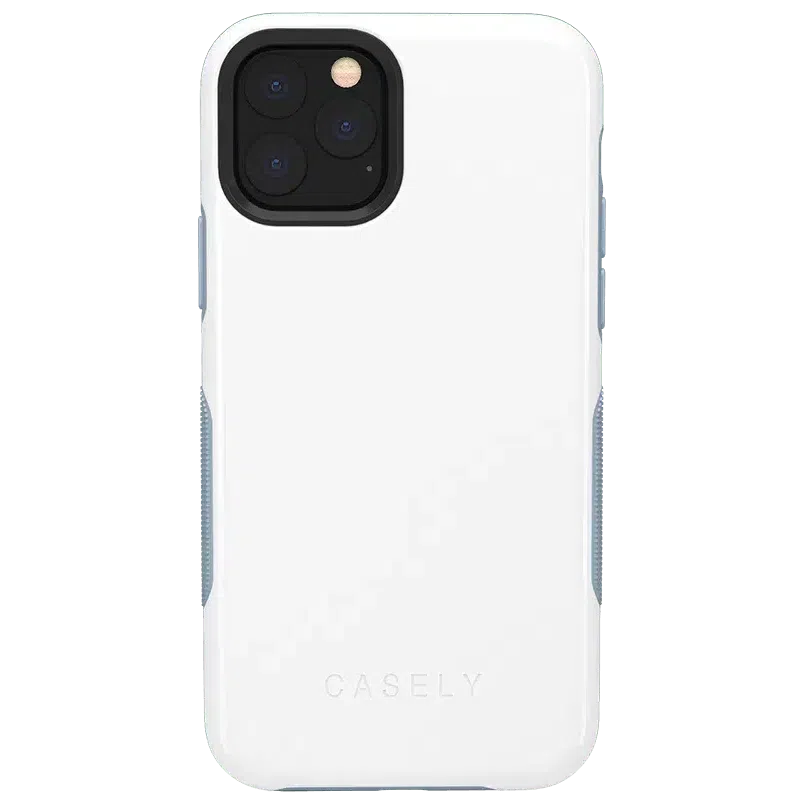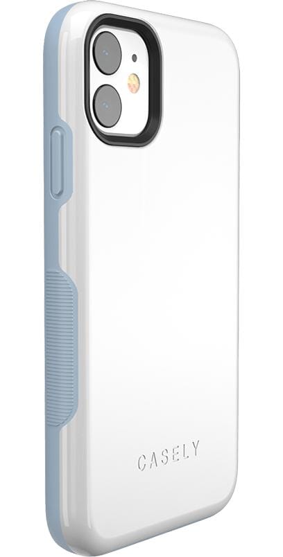 Treat yourself with the simple and smooth White on Light Blue case from The Bold Collection! The back of this case is a crisp. elegant white that gives it a stylish and classic feel. The sides are also white but strategically interrupted by light blue accents on the grips. power button. and volume buttons. The pop of color adds even more character to an already lively phone case. Besides having the essentials to put together an effortless look. the protective White on Light Blue case from The Bold Collection will help prevent damage to your phone. The 3mm raised front lip and 1.5 mm raised camera lip keep your phone screen and camera safe from potential cracks and scratches. Inside air pockets that are smoothly incorporated into the design add yet another layer of safety. and the secure grip will make sure your phone stays firmly in your hands. With all of these advanced safety features. you can get out there and show off your new case without any hesitation!