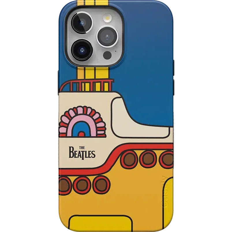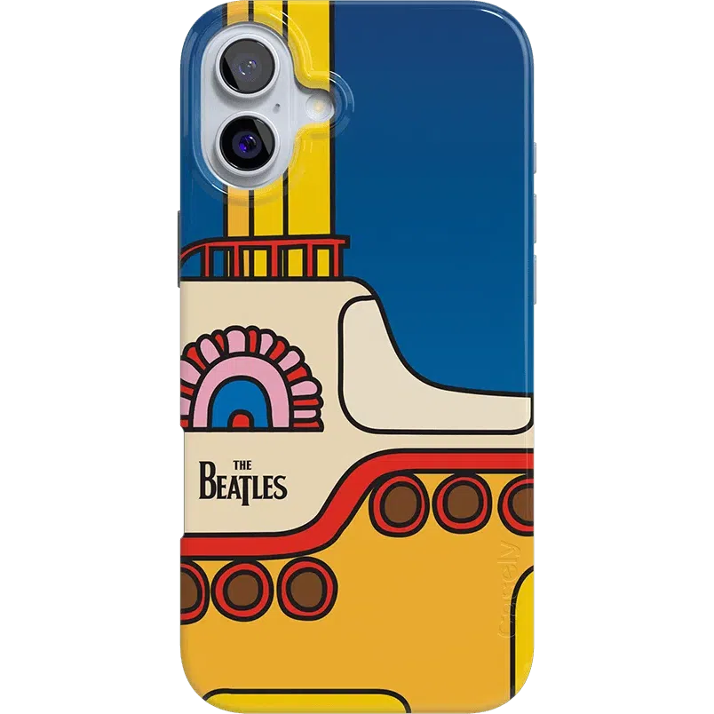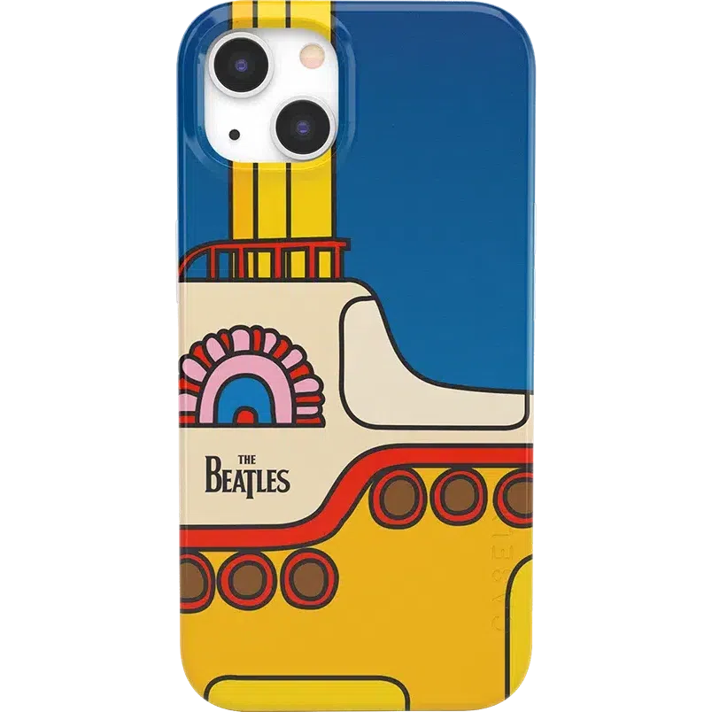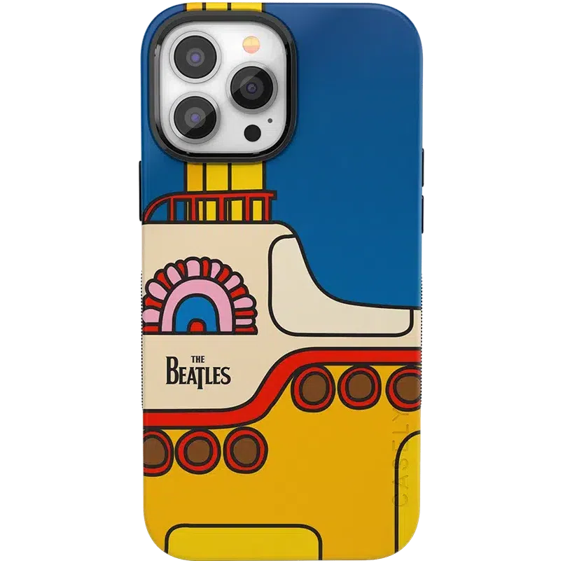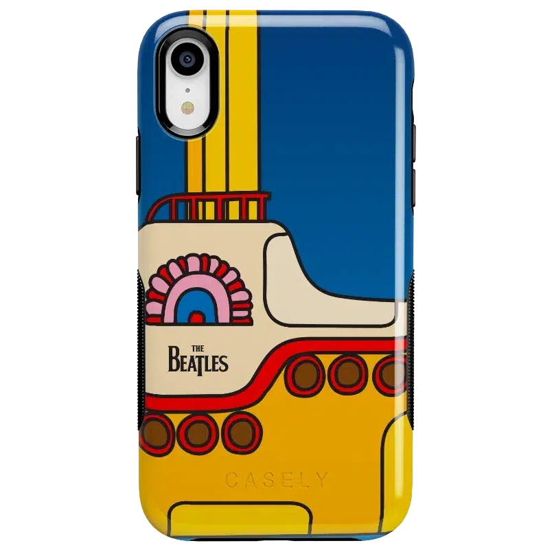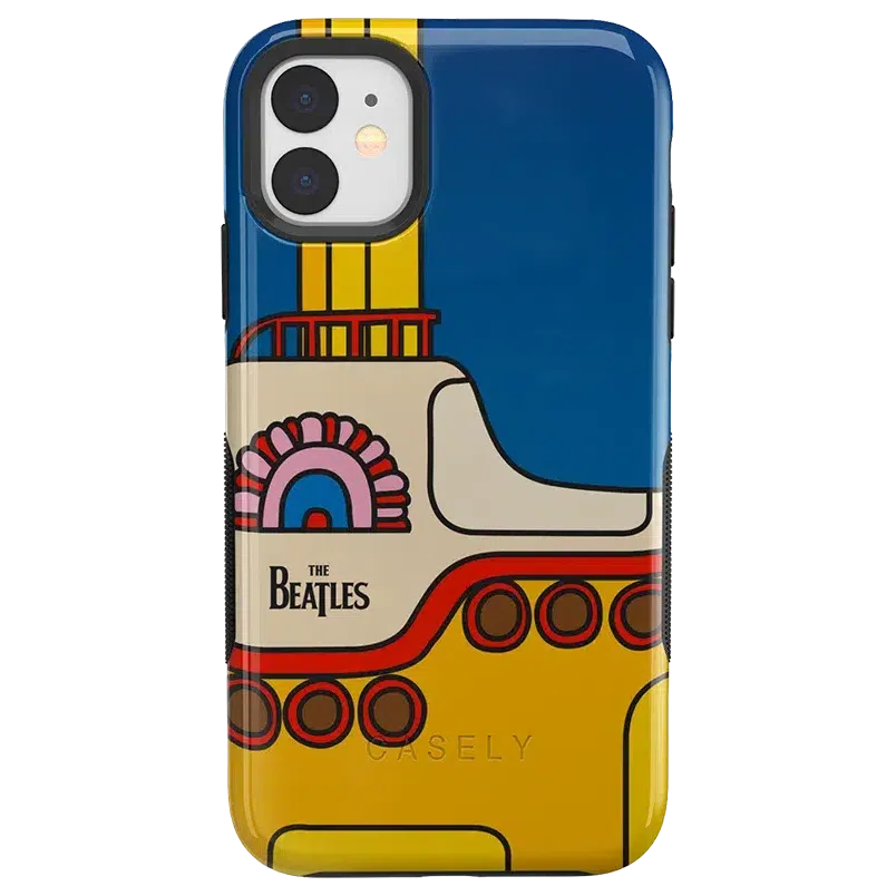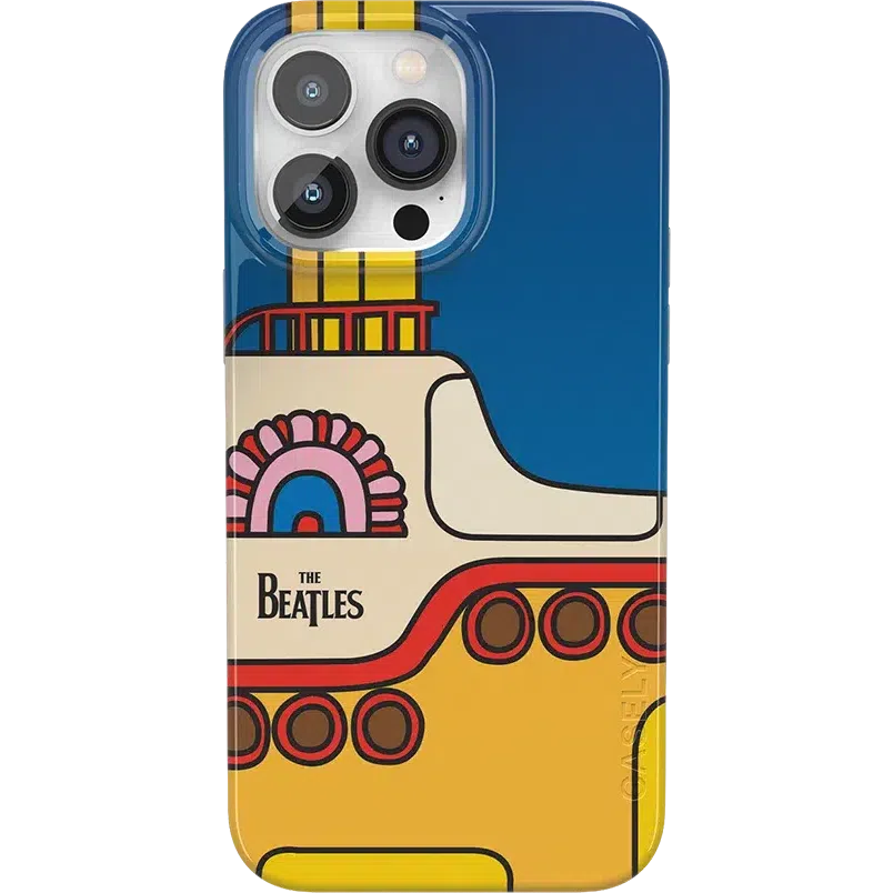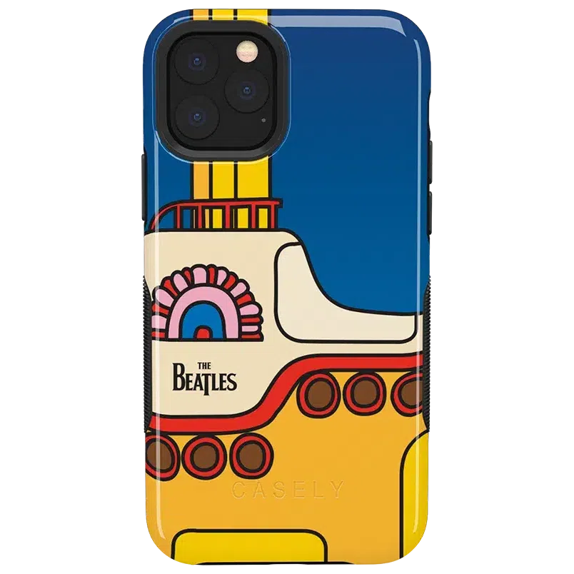 Dive into a sea of style with the new Beatles x Casely Yellow Submarine phone case. The iconic imagery from The Fab Four provides some nautical nostalgia and pays tribute to the rock & roll legends. Made for a variety of iPhone sizes. this limited edition cover is sure to keep your phone safe. The hard shell goes all the way around the edges of your phone for complete protection from scratches and drops.
