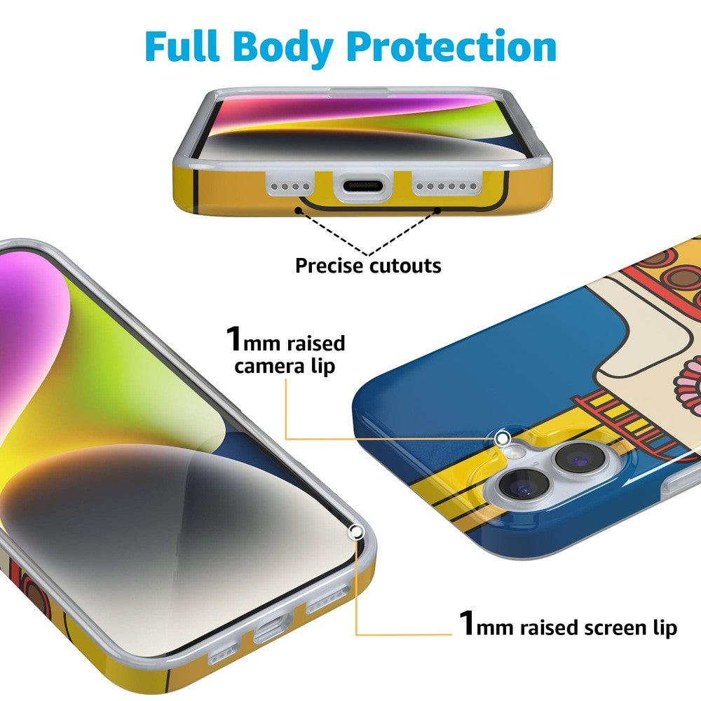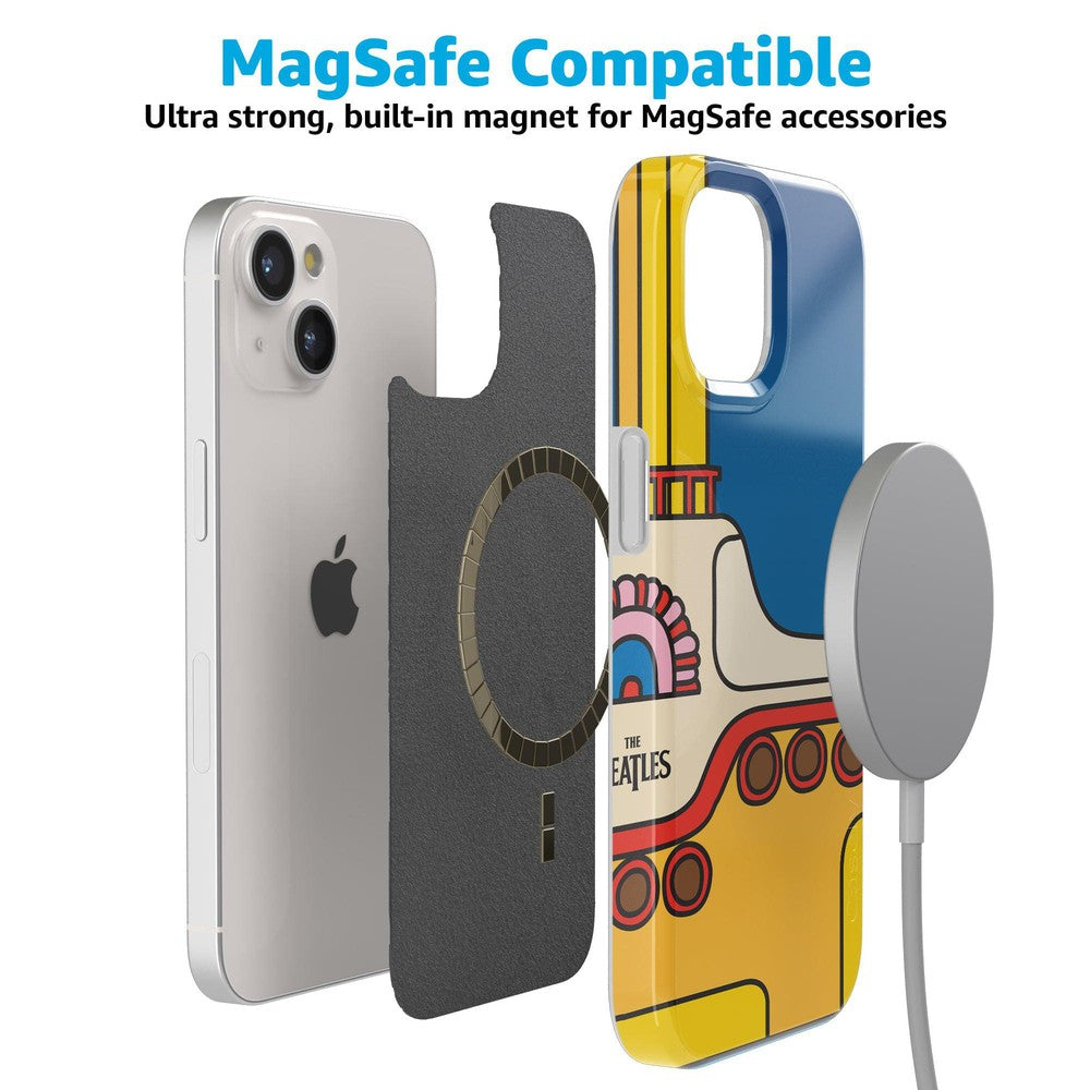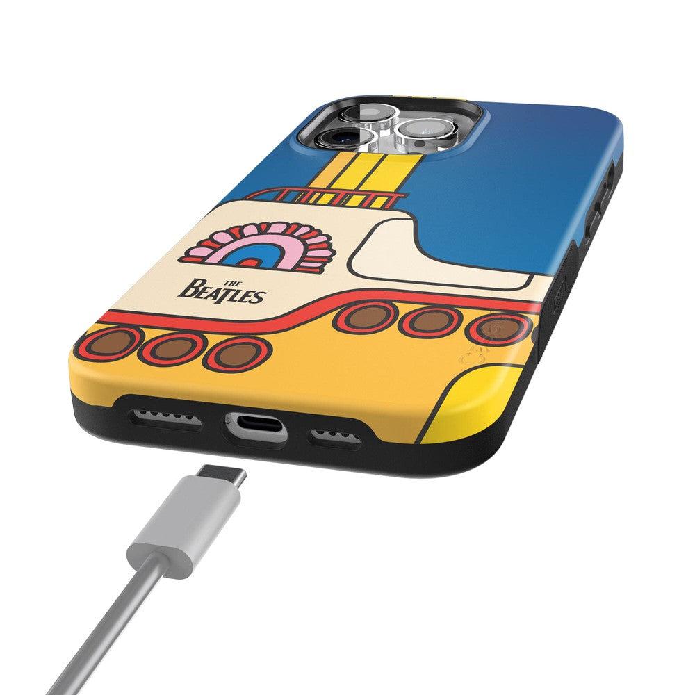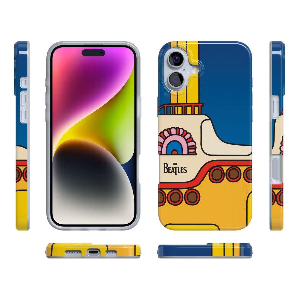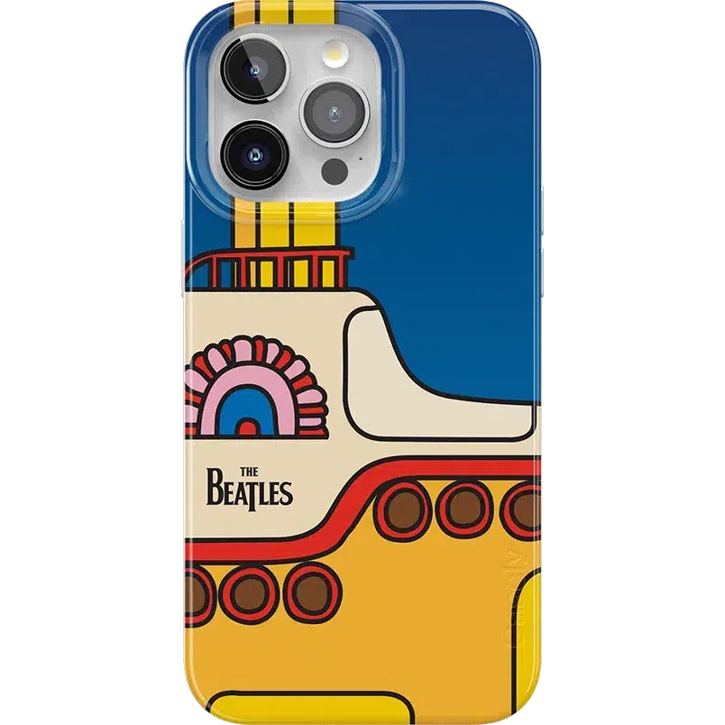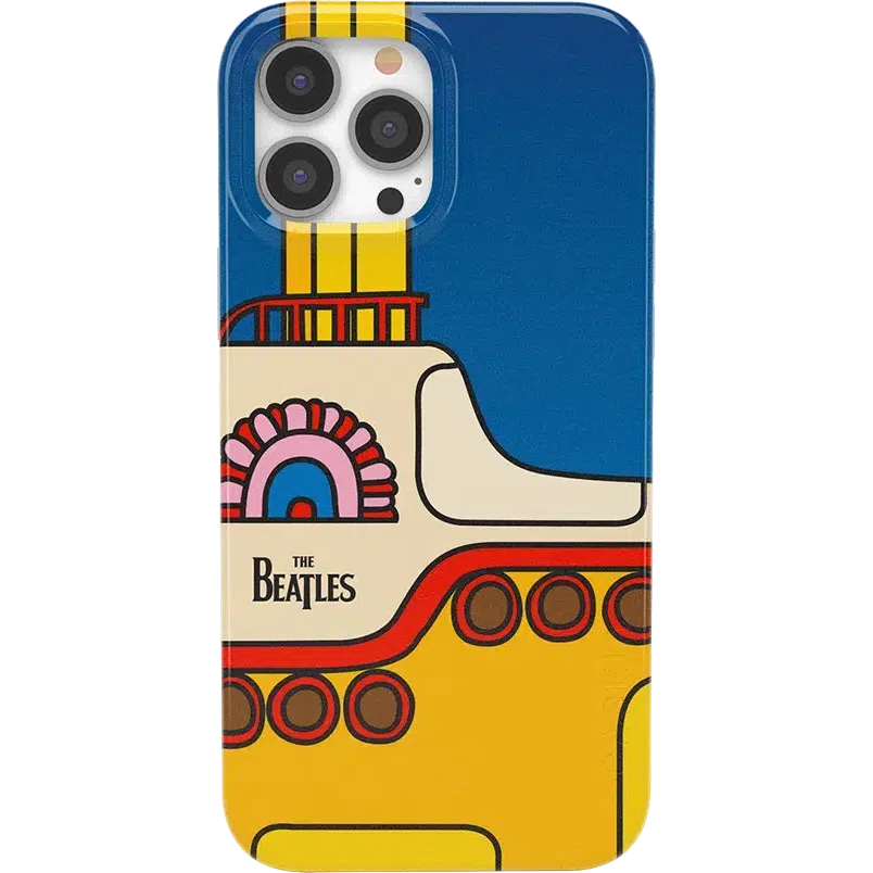Dive into a sea of style with the new Beatles x Casely Yellow Submarine phone case. The iconic imagery from The Fab Four provides some nautical nostalgia and pays tribute to the rock & roll legends. Made for a variety of iPhone sizes. this limited edition cover is sure to keep your phone safe. The hard shell goes all the way around the edges of your phone for complete protection from scratches and drops.